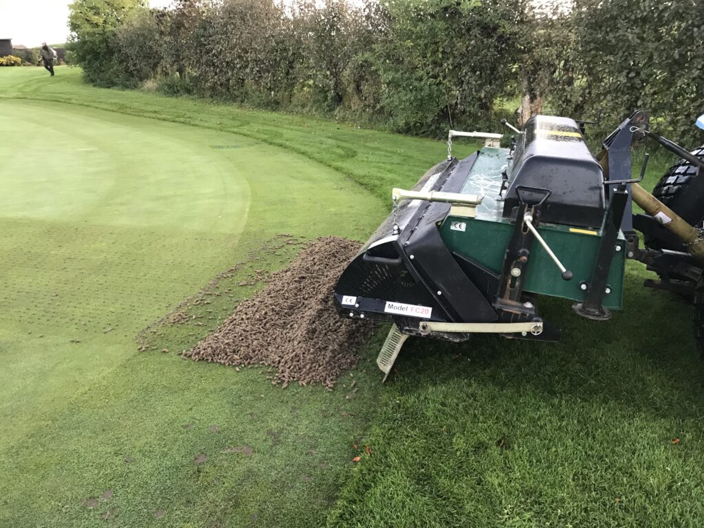 Arbejdet på greens med propning og opsamling foretages i samarbejde med de lokale greenkeepere i Hobro Golf Klub.